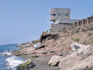 他無奈表示,起碼還有1米沙灘,有時(shí)根本看不到,往年沙灘常舉辦沙雕比賽,現(xiàn)在卻連旁邊自行車道也不見,遠(yuǎn)處舊海巡營(yíng)區(qū)更隨時(shí)會(huì)倒下,岌岌可危,從前回填垃圾與石渣也因海水侵蝕裸露。