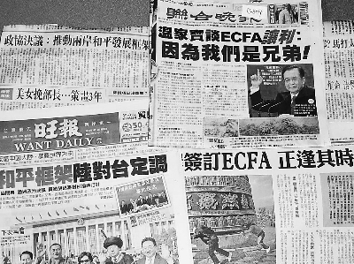 今天此間出版的《旺報(bào)》,頭版頭條以通欄標(biāo)題《和平框架:陸對臺定調(diào)》為題,報(bào)道了全國政協(xié)閉幕的消息。該報(bào)在第二版還發(fā)表了特派記者發(fā)回的新聞分析,標(biāo)題是《大陸官方客觀、全面、辯證分析兩岸形勢》。文章指出,大陸全國政協(xié)閉幕式上通過的“政治決議”中提到“兩岸關(guān)系和平發(fā)展框架”,這既反映中共中央總書記胡錦濤對臺指導(dǎo)方針,也是今年初以來,國臺辦、海協(xié)會一再強(qiáng)調(diào)的年度工作目標(biāo)。對臺灣民眾而言,較為熟悉的是簽署兩岸和平協(xié)定或兩岸軍事互信,以及正式結(jié)束兩岸敵對狀態(tài)等。事實(shí)上,按照大陸方面的構(gòu)想,這些都包括在“兩岸關(guān)系和平發(fā)展框架”的大工程中。