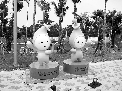 此次吉祥物的設(shè)計概念是以高雄市“光和水”兩大主題作為靈感,“高妹”與“雄哥”頭部造型像個小水滴,頭上的小球吸收太陽能后,身體就會發(fā)光,此構(gòu)想概念是源自高雄世運會主場館特有的太陽能發(fā)電系統(tǒng)建筑設(shè)計,全球第一座使用太陽能的綠色建筑運動場館,傳達(dá)著對綠色能源、環(huán)境保護(hù)等議題的關(guān)心。(鄭固固攝)