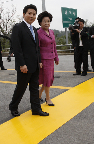 2007年10月2日上午,韓國(guó)總統(tǒng)盧武鉉跨過(guò)了韓朝軍事分界線,成為首位跨越軍分線入朝的韓國(guó)總統(tǒng)。朝鮮官員在軍事分界線朝鮮一側(cè)歡迎。