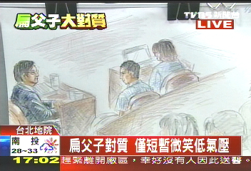 中新網7月9日電 陳水扁父子8日首次法庭同臺。臺北地院審理扁家洗錢案,傳喚陳致中與陳水扁對質。因陳水扁拒絕答辯,兩人只有眼神短暫交會,完全沒有互動。庭訊結束,陳致中向公設辯護人及父親鞠躬致意,陳水扁一時錯愕,隨即露出微笑。