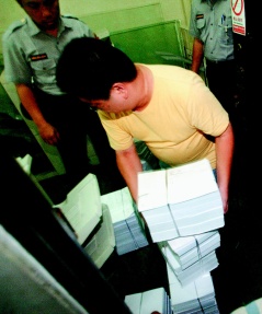 為避免意外,一直到深夜12點(diǎn),轄區(qū)中正一分局及法警還在臺(tái)北地院四周戒護(hù)。這時(shí)眼尖的記者看到蔡守訓(xùn)抱著一千多頁(yè)的判決書步出辦公室,書類上貼了許多黃色的便利貼,交給專人送到法院附近的印刷廠,連夜趕印。