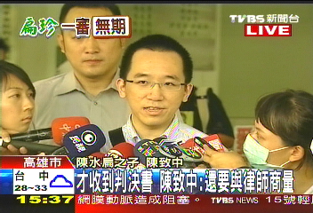 對于會再上訴嗎?陳致中稱:“當然可能會朝這樣的方向,但是必須跟律師充分討論后,再來做處理!