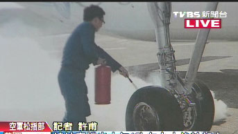 臺空軍司令部上午也表示,該專機(jī)落地滑行時,“右主輪癟氣起火”。