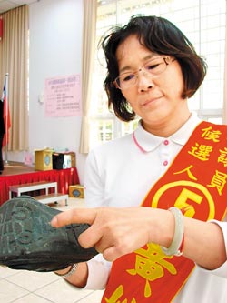 桃園縣議員第一選區(qū)公辦政見(jiàn)發(fā)表會(huì)二十六日舉行,十九位候選人中僅五人到場(chǎng),而呂秀紋則因?yàn)檫t到,錯(cuò)失上臺(tái)闡述政見(jiàn)的機(jī)會(huì),郭貴香丈夫、也是前縣議員黃享欽,原本欲替老婆代打遭制止,而參與政見(jiàn)發(fā)表會(huì)候選人各出奇招,黃婉如脫鞋秀破鞋表示勤走基層、黃智銘拿出口罩凸顯甲型流感疫情嚴(yán)重性,盼選民能清楚了解其政見(jiàn)。