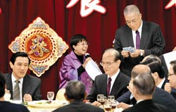 除“行政院”外,國民黨也席開四十桌,辦桌請(qǐng)黨工吃尾牙,黨主席馬英九大方送出六項(xiàng)大獎(jiǎng),讓黨工“有吃又有拿”。歡喜過年前,馬英九還是提醒所有黨工,國民黨現(xiàn)在正在大力促進(jìn)團(tuán)結(jié)與改革,對(duì)于二月二十七日的“立委”選舉,一定會(huì)全力以赴,“希望這次有比上次更好的表現(xiàn)”。
