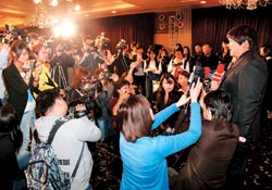 記者會上,SONY播小胖的歷程VCR,他也高唱成名曲〈I Will Always Love You〉,看到臺下成群結(jié)隊的粉絲,拿著“小胖”、“加油”的牌子,他突然哽咽:“謝謝你們,我一定會加油,不辜負大家的期望!彪S即拿起手帕拭淚,笑稱:“我鼻酸,感覺很激動,淚水混著汗水掉下來了。”大陸SONY歌手李易峰和蘇醒,分別吆喝自己粉絲,到場替師弟小胖加油打氣。