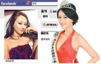 報(bào)道說,Amanda在Facebook自稱獲“2006環(huán)球小皇后臺(tái)灣區(qū)代表”,據(jù)查,真正代表是李蔚玲,Amanda作假,先在網(wǎng)絡(luò)上放作假戴后冠、肩帶的照片,又放上與李蔚玲披該賽代表肩帶的合照,因作假露餡,之后取下照片。