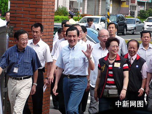 馬英九到達后和黨員同志一樣排隊進場投票,當?shù)攸h員投票踴躍、在教室前排成長隊。馬英九當天穿著輕便夏裝,神情愉快;在吳伯雄、競選辦事處總干事曾永權(quán)陪同下等候近二十分鐘,其間不斷有黨員上前與他溝通,以及拍照留念。