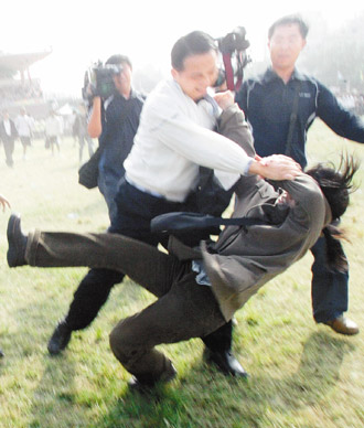 另據(jù)《中國時報》報道,陳水扁曾在二00五年時,交代“文建會”將樂生列為古跡。時隔二年,仍未付諸實施,因此樂生青年聯(lián)盟成員趁其參加成大校慶的場合,拉白布條陳情。被過肩摔女生說,同學(xué)以和平理性方式陳情,陳水扁隨從卻以如此粗暴的手段對待,事后一句道歉都沒有。