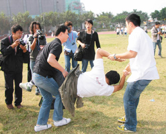 廖姓學(xué)生與安全人員拉扯,躺在地上大喊“樂生依法定古跡”,被抬離現(xiàn)場。同行一名瘦小的王姓女學(xué)生走近想幫忙,卻被安全人員來一記過肩摔,雖無明顯外傷,已受到驚嚇。不少學(xué)生氣憤地說:“嗆得好,我們都快活不下去了!