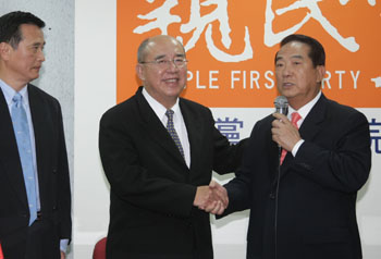 中新網(wǎng)11月19日電 親民黨主席宋楚瑜與國民黨主席吳伯雄今天(19日)共同召開記者會,宣布親民黨“立委”馮定國退出區(qū)域“立委”選舉。但黨籍“立委”沈智慧等仍不愿退選,宋楚瑜表示,明天為“中選會”受理“立委”參選人登記最后一天,國親一定努力整合到最后一刻,不放棄任何機會。