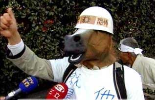 中新網(wǎng)11月23日電 據(jù)臺灣東森新聞網(wǎng)報道,正在日本訪問的國民黨二00八“大選”參選人馬英九,連續(xù)兩度遭到日本右翼激進份子的抗議,這群人頭戴馬臉面具,時時看電視、翻報紙,就是要掌握馬英九的行蹤,不管馬英九到那里,他們就嗆到那里。