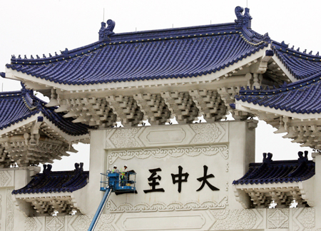 中新網(wǎng)12月7日電 臺當(dāng)局“教育部”拆除“大中至正”牌匾行動完成最后部署,今天(7日)上午10時40分左右展開,工程人員首先敲除“正”字,因字體鑲崁太過堅固未能敲下,目前工作暫停。警方在現(xiàn)場除了布置路障,也在牌匾附近嚴(yán)密戒護,F(xiàn)場不見抗議人士,有綠營人士到場關(guān)切。