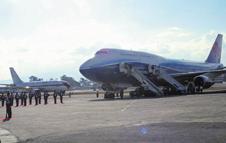 據(jù)了解,連當(dāng)?shù)孛襟w都覺得危國(guó)政府這樣的安排,對(duì)訪賓相當(dāng)不尊重。因機(jī)頭正對(duì)紅毯,等于是陳水扁步出機(jī)門時(shí),無法依例向迎賓揮手致意,必須立即下機(jī),接著右轉(zhuǎn)才能走上紅毯,當(dāng)?shù)孛襟w捕捉鏡頭時(shí),只能帶到機(jī)頭畫面。