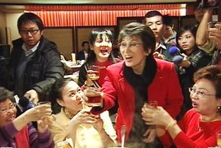 藝人沈孟生說:“各位朋友,我們馬‘總統(tǒng)’候選人的馬二姊,還有兩位理事長,你(馬乃西)是我的粉絲,我是馬英九的粉絲。”和沈孟生敬酒的就是馬英九的二姊馬乃西,這一餐是老藝人的尾牙宴,馬乃西雖然是為弟弟馬英九跑攤拉抬聲勢,但是一談到政治……,馬乃西就說:“對不起對不起,我不接受訪問。”