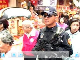 據(jù)臺(tái)灣東森新聞報(bào)道,謝長廷一路和支持者寒喧握手、發(fā)放紅包,原本人潮密集的街道更是寸步難行,兩名特勤中隊(duì)隊(duì)員全副武裝隨侍在側(cè),就這么大剌剌的把MP5沖鋒槍和M4突擊步槍掛在胸前,拜年掃街的氣氛相當(dāng)詭異。