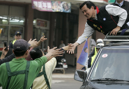 據(jù)臺灣媒體報道,馬英九陣營除規(guī)劃在臺北縣、臺南縣舉辦10萬人大型造勢活動外,也將視對手造勢規(guī)模,彈性擴大造勢活動。馬陣營一名幕僚表示,艱困選區(qū)如嘉義縣市和臺南縣市,仍將是最后階段的拜票重點。馬英九競選副手蕭萬長打算與馬英九互補,密集拜會中南部本土企業(yè)與當?shù)厥思潱瑩尮ゾG營票倉。