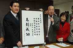 馬英九訪"臺聯(lián)"秘書長 錢橙山送"馬到成功"(圖)