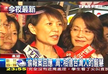 而對于媒體提及的偷報紙事件,周美青說:“我覺得謠言止于智者,我相信臺灣人的智慧,我對臺灣人的智慧,有百分之二百的信心!
