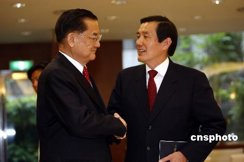 3月31日, 臺灣地區(qū)領(lǐng)導(dǎo)人當(dāng)選人馬英九拜會國民黨榮譽(yù)主席連戰(zhàn),向連戰(zhàn)請益。中新社發(fā) 杜洋 攝