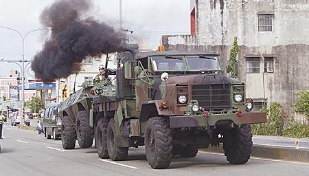 “玉山演習(xí)”22日舉行,一輛裝甲車途中故障,臺(tái)憲兵立刻拖往維修。