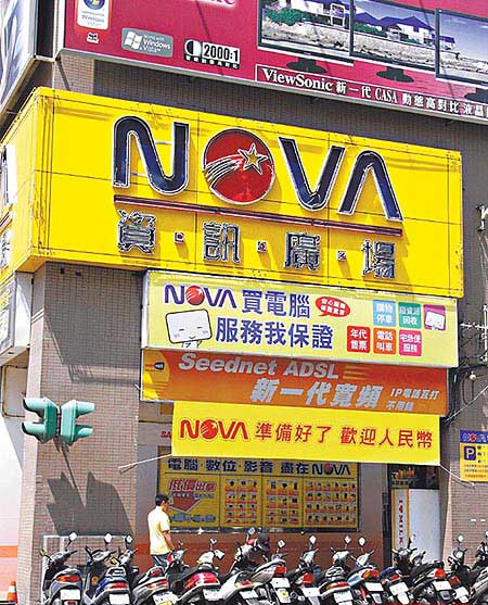 報(bào)載全臺(tái)連鎖的3C賣場(chǎng)NOVA 貼出歡迎人民幣的廣告,另一家咖啡連鎖墊真鍋咖啡也在價(jià)目表上列入人民幣計(jì)價(jià)項(xiàng)目。