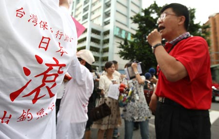 臺(tái)北縣永和市民代表黃錫麟帶領(lǐng)數(shù)名民眾在現(xiàn)場(chǎng)抗議,要求日本政府立即放人并且離開(kāi)釣魚島。