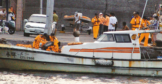 臺“海巡署”安檢人員加強安檢,登船仔細(xì)檢查防止限制對象出海。(圖:臺灣《聯(lián)合報》)