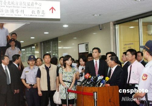 圖為陳水扁在出庭應(yīng)訊后對媒體表達看法。不久的將來,他將面臨對其貪污的審判。 中新社發(fā) 黃少華 攝