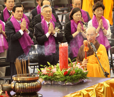 參加法會,馬英九沒談?wù),記者沒機會問他和蔡英文同臺尷不尷尬,不過答案恐怕也是阿彌陀佛。