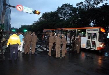 臺(tái)檢方特偵組周遭因應(yīng)陳水扁應(yīng)訊實(shí)施交通管制。(“中央社”圖)