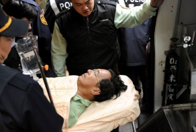 陳水扁禁食5天,16日晚間被戒護送往醫(yī)院治療,17日早上在警力戒護下轉院繼續(xù)治療。(“中央社”圖)