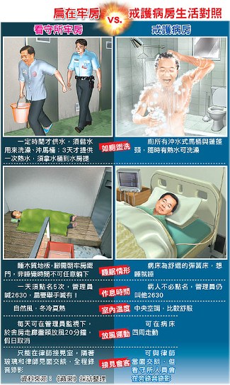 陳水扁在看守所與戒護病房生活對比(來源:臺灣《蘋果日報》)