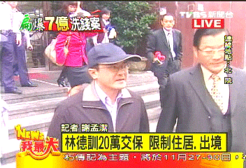 臺北地方法院裁定,林德訓(xùn)以新臺幣20萬元交保,限制出境、居住。圖片來源:臺灣TVBS