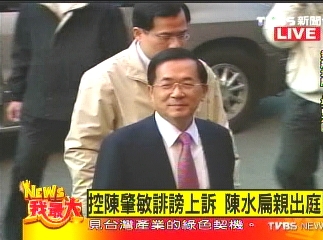 中新網(wǎng)12月17日電 陳水扁控告臺當(dāng)局“國防部長”陳肇敏加重誹謗案一審敗訴后提出上訴。臺灣“高院”今天下午15點(diǎn)30分左右開庭,陳水扁無保釋放后首次親自出庭。