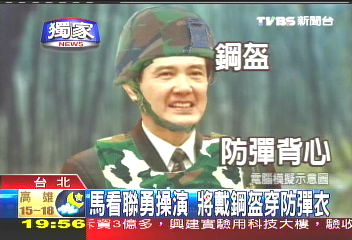 馬英九穿戴防彈背心及鋼盔的模擬圖(臺灣TVBS圖)