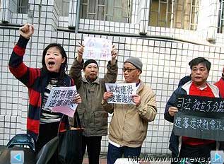 法院場(chǎng)內(nèi)也有扁家護(hù)衛(wèi)隊(duì)因?yàn)闊o(wú)法旁聽,與法警發(fā)生沖突。