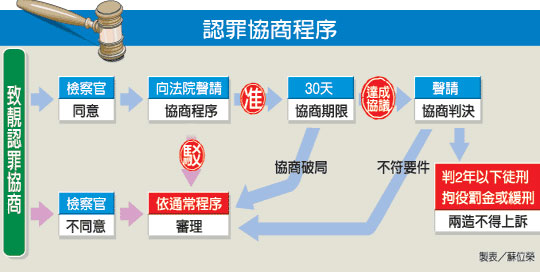 何謂“認(rèn)罪協(xié)商”?簡(jiǎn)單說就是被告認(rèn)罪后,與檢察官、法官針對(duì)罪名、刑度等相關(guān)事項(xiàng)進(jìn)行協(xié)商的刑事訴訟制度。在認(rèn)罪協(xié)商程序中,被告須與檢察官協(xié)商罪名、刑度后,向法院陳報(bào),經(jīng)法院同意下開庭制作“協(xié)商筆錄”,即完成協(xié)商程序,案件就不能再上訴,宣告定讞。不過,公訴檢察官在與被告協(xié)商前,必須先征詢偵查檢察官的意見,甚至還要經(jīng)檢察長(zhǎng)批示準(zhǔn)許后,才能實(shí)施。