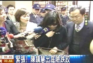 陳鎮(zhèn)慧自從去年11月20日轉(zhuǎn)為污點證人,離開臺北看守所后,到現(xiàn)在已經(jīng)有77天沒有公開現(xiàn)身,傳出這一段時間,陳鎮(zhèn)慧都是易容出門和律師討論案情,所以今天出庭備受矚目。