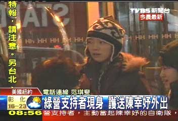 綠營(yíng)支持者夾著陳幸妤上了出租車(chē),下車(chē)后陳幸妤先到快餐店用餐,接著到紐約大學(xué)牙醫(yī)學(xué)系,晚間則是綠營(yíng)支持者安排陳幸妤到百老匯看劇。