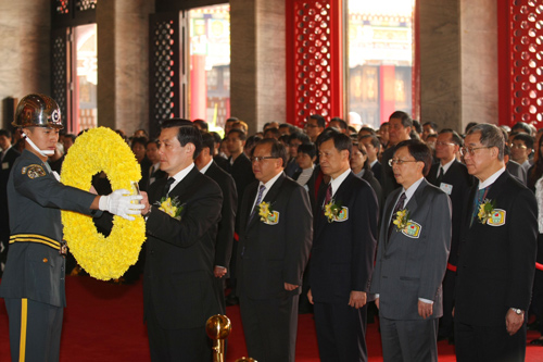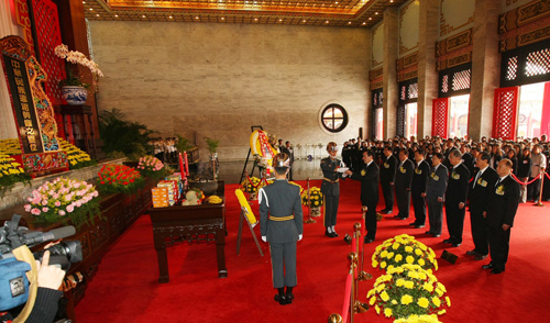 清明節(jié)將屆,“中樞遙祭黃帝陵典禮”上午在圓山忠烈祠舉行,馬英九親率文武百官參與,遵循上香、獻花、三鞠躬禮等儀式,遙祭黃帝陵,“行政院長”劉兆玄、“司法院長”賴英照等出席陪祭,典禮莊嚴(yán)肅穆。