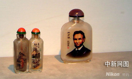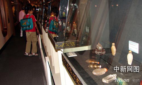 僅僅幾十平方的長廊,卻從容地擺放著二百多件的展品,在這里,能看到翡翠、玉石、瓷器、水晶、竹、牙,也能欣賞到書畫、雕刻、釉彩、銅胎等等,位于臺北市南海路的歷史博物館二樓,八月二十九日下午開始的“臺北鼻煙壺珍品展”,在展示鼻煙壺之精美的同時, 也讓參觀者領略了中華傳統(tǒng)藝術的博大和豐富內(nèi)涵。