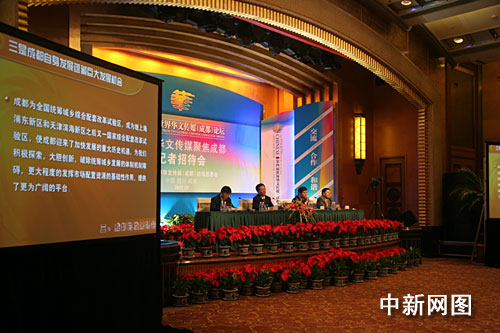 [中共成都市委常委、宣傳部長郝康理]: 各位新聞界的朋友們,女士們,先生們,大家下午好。時值金秋九月,美麗的蓉城榮幸地迎來了第四屆世界華文傳媒論壇的舉行。為了讓廣大海外媒體更好地了解成都,今天我們專門在此舉行“世界華文傳媒聚焦成都”專題記者招待會,由成都市領(lǐng)導(dǎo)向各位記者介紹成都市的基本情況,以及成都市舉辦本屆世界華文傳媒論壇的相關(guān)情況。出席今天記者招待會的領(lǐng)導(dǎo)有:中共成都市委副書記、成都市市長葛紅林先生;成都市委常委孫平先生,成都市副市長何華章先生,以及成都市發(fā)展改革委員會、投資促進(jìn)委員會、商務(wù)局等部門的負(fù)責(zé)人。除了參加本屆論壇的海外記者出席記者招待會外,還有國內(nèi)外眾多的媒體記者參加招待會,在這里向大家表示熱烈的歡迎。為了讓第一次光臨成都的媒體朋友充分了解成都,首先請大家看張藝謀導(dǎo)演拍攝的宣傳片,《成都—一座來了就不想離開的城市》。 |
