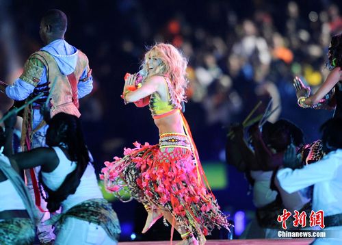 中新網(wǎng)7月12日電 北京時間12日凌晨,世界杯閉幕表演在南非約翰內(nèi)斯堡的足球城體育場舉行。出生于哥倫比亞的拉丁天后夏奇拉在閉幕式上唱響了本屆世界杯的主題歌《Waka Waka (This Time for Africa)》(《非洲時刻》),點燃了現(xiàn)場的激情。