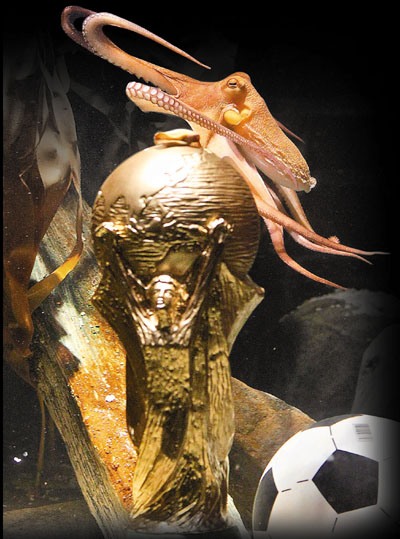 中新網(wǎng)7月13日電 英國廣播公司報道,因成功預(yù)測德國隊在南非世界杯賽中的每場比賽結(jié)果以及西班牙隊奪冠而聞名于世的章魚保羅被授予一個世界杯獎杯模型。