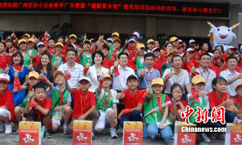 中新網(wǎng)廣州8月19日電 (記者 莫非 程景偉)“這是一次令人難忘的活動(dòng),我們了解有關(guān)亞運(yùn)的知識(shí)、參觀亞運(yùn)訓(xùn)練場(chǎng),還了解了運(yùn)動(dòng)員如何通過訓(xùn)練,換來好成績(jī)!眮碜曰洷鄙仃P(guān)的留守兒童劉梅霞告訴記者。19日下午,由廣東團(tuán)省委、廣東省福彩發(fā)行中心等單位聯(lián)合舉辦的“我為亞運(yùn)添光彩”——廣州亞運(yùn)小記者牽手廣東“福彩夏令營”營員迎亞運(yùn)活動(dòng)在冠軍訓(xùn)練營——廣州體育職業(yè)技術(shù)學(xué)院舉行。