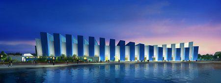 廣東奧林匹克體育中心游泳跳水館是亞運(yùn)會游泳跳水項(xiàng)目的主要比賽場館,將舉行游泳、跳水和現(xiàn)代五項(xiàng)游泳比賽及亞殘會游泳比賽,賽后將作為國家南方訓(xùn)練基地,滿足國家隊(duì)冬訓(xùn)及亞運(yùn)會之后舉行重大賽事的要求。該館總坐席數(shù)為4584座,分別設(shè)置了標(biāo)準(zhǔn)比賽池(含移動池岸)、訓(xùn)練池、跳水池。其設(shè)計(jì)力求與原基地環(huán)境相協(xié)調(diào),總體布局上延續(xù)了奧林匹克體育中心的總體規(guī)劃設(shè)計(jì)理念,游泳館主體造型采用雙色螺旋流動造型,主體建筑白色和藍(lán)色相間,既巧妙地隱喻了廣州“云山珠水”的城市地理特征,又是對主體育場“飄帶”曲線的延續(xù)。同時通過相互穿插流動造型,結(jié)合建筑朝向,很好的滿足了建筑內(nèi)部空間高度、采光通風(fēng)、建筑節(jié)能以及合理布置設(shè)備管道的需求。