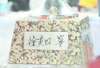 禮花飛下,萬(wàn)眾歡呼。男籃世錦賽昨日落下帷幕,美國(guó)夢(mèng)九隊(duì)登頂成功。隊(duì)長(zhǎng)比盧普斯與老將奧多姆高高舉起獎(jiǎng)杯,一臉的興奮。獎(jiǎng)杯非常漂亮,像一朵盛開(kāi)的蓮花。而獎(jiǎng)杯的底座是一塊梯形的石材,四面都刻著字。而有一面的文字讓中國(guó)球迷特別的親切,因?yàn)槟巧厦婵讨膫(gè)漢字———“徐美四 寧”。