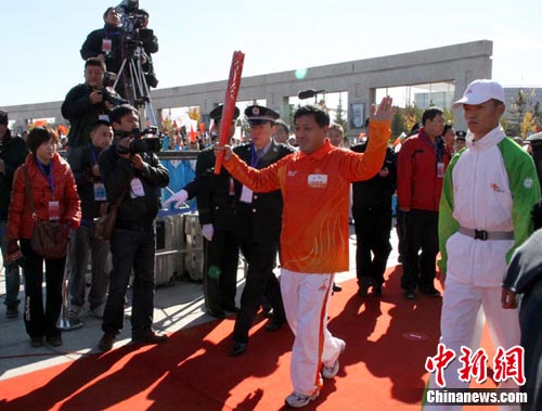 中新網(wǎng)長春10月15日電 (李彥國 田偉)第16屆廣州亞運會火炬15日在吉林省長春市進行展示性傳遞,這是本屆亞運會火炬?zhèn)鬟f在廣東省外的第二站。16名火炬手在長春世界雕塑公園完成16棒傳遞,5000余名長春市民現(xiàn)場見證這一時刻。(完)